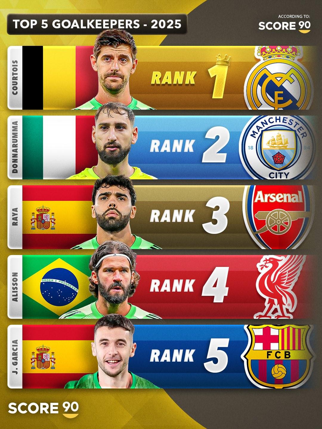 北京时间12月31日,Score90公布了根据他们的数据统计选出的2025年度前5名门将在线配资网站,其中库尔图瓦排名第一,多纳鲁马、拉亚分列二三。